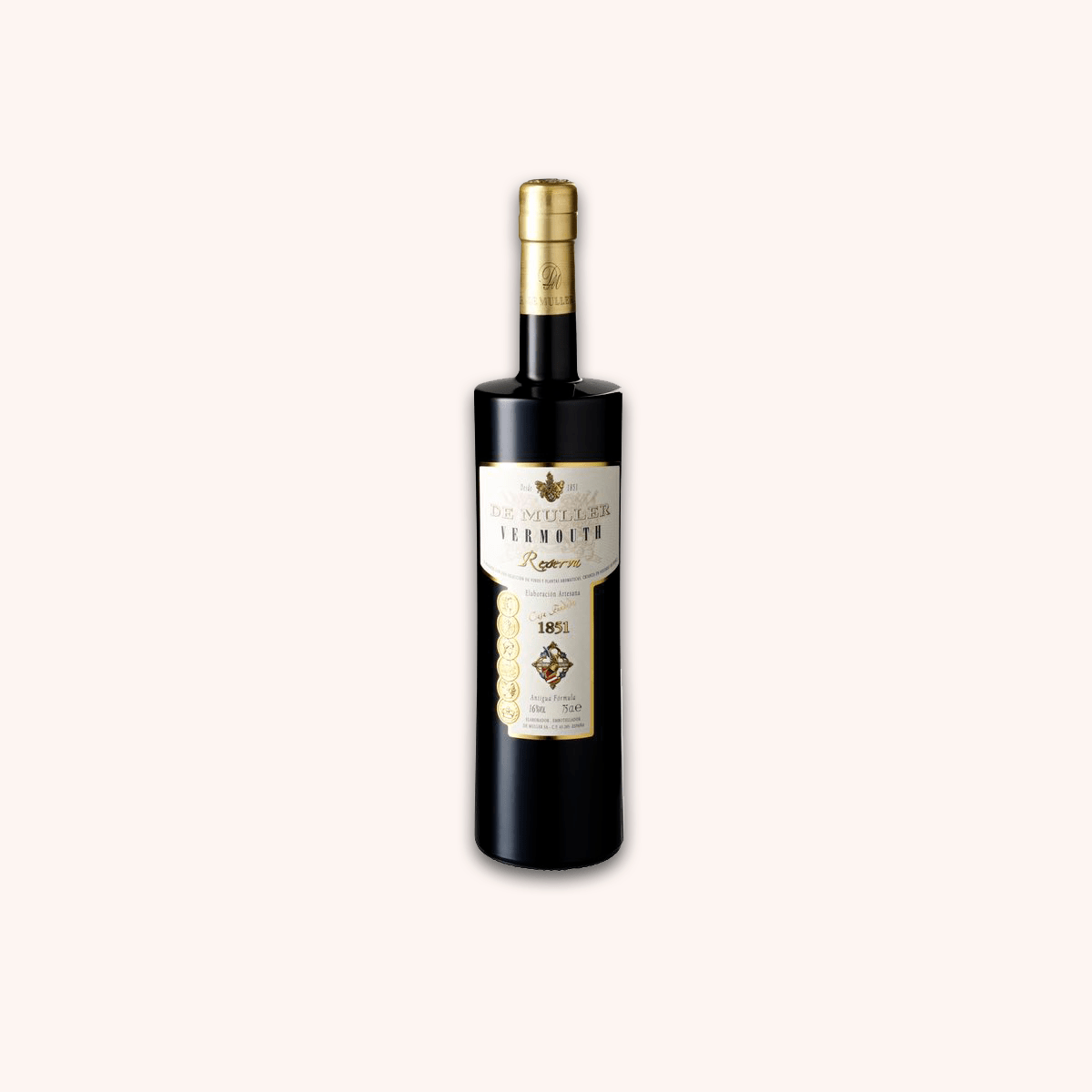 Vermut Iris Vermell de la casa Muller, casa fundada per Don Augusto de Muller i Ruinart de Brimont, descendent d’una família de vinicultors d’origen francès que van veure el potencial en aquestes terres per a plantar les seves vinyes i que històricament ja havien vist les colònies gregues i després els romans. Avui dia és una de les empreses pioneres del sector, tant en tecnologia com per la qualitat dels seus vins.